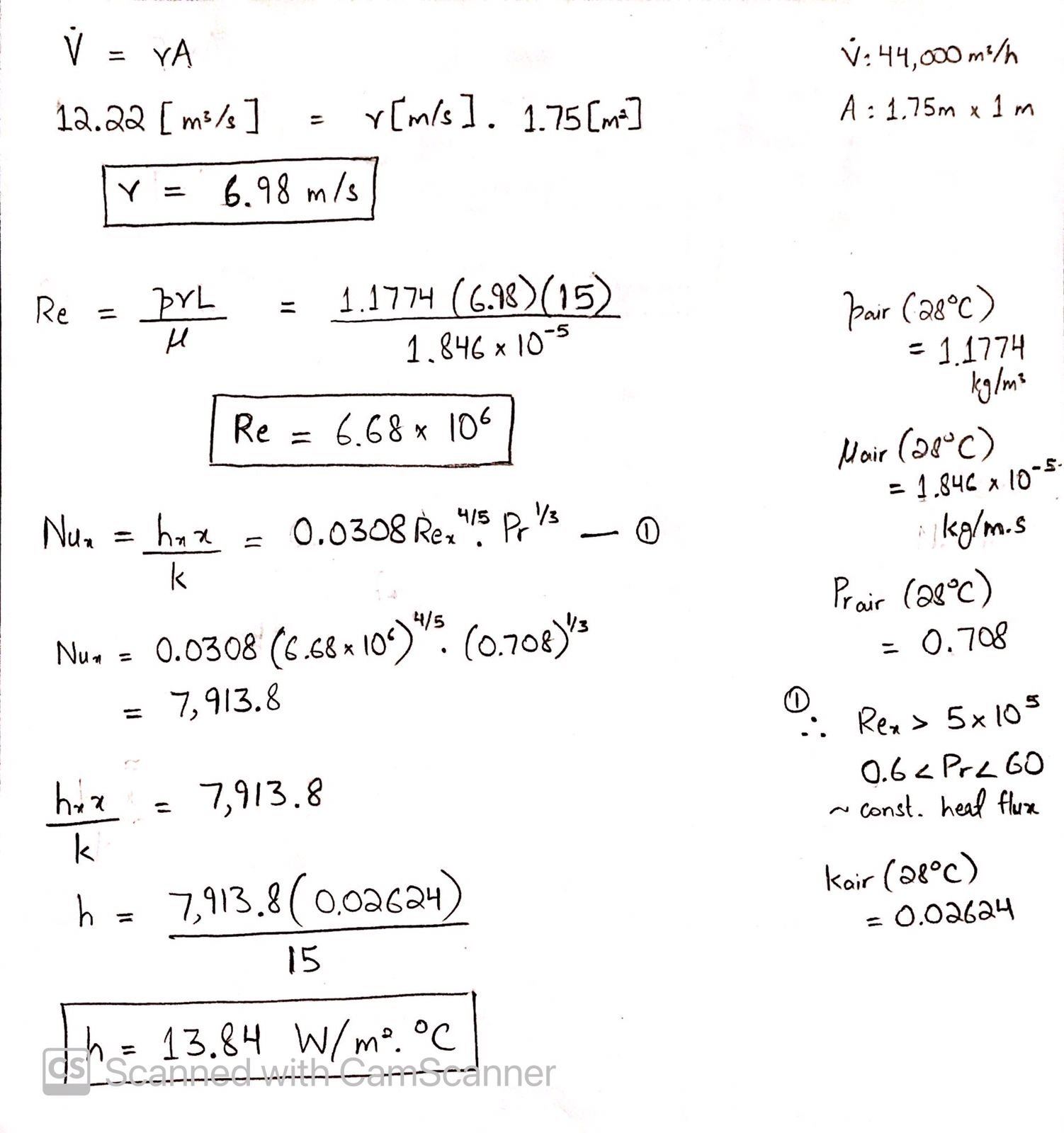 Convection coefficients were calculated using Nusselt number formulas, with Prandtl numbers assigned based on established literature for accurate heat transfer modeling.