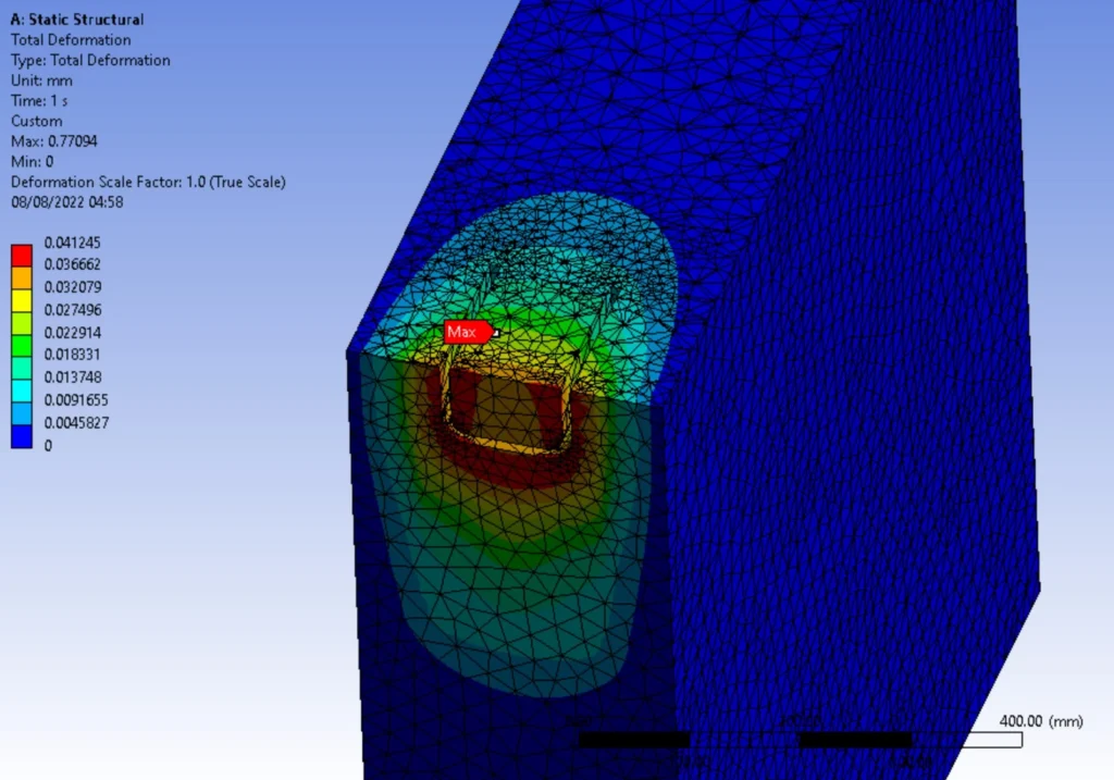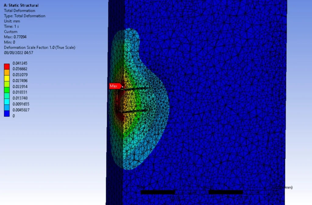 This required a detailed computational model capable of capturing stress distribution and deformation behavior across the joint.